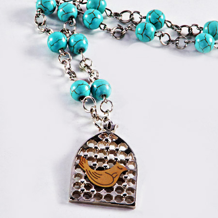 سریال شهرزاد این روزها حسابی در شبکه نمایش خانگی و به عبارتی در شبکه نمایش اینترنتی هم حسابی غوغا کرده. در این سریال بازیگر نقش شهرزاد که ترانه علیدوستی می باشد یک گردنبند هدیه می گیرد که به گردنبند مرغ آمین هم معروف است، به همین دلیل درخواست و تقاضای بینندگان این سریال باعث شد که تولید و فروش گردنبند مرغ آمین آغاز گردد. گردنبند مرغ آمین سریال شهرزاد با جنس استیل، ساخته شده با هنر دست ایرانی می باشد. پلاک و زنجیر این گردنبند استیل می باشد که مرغش آب کاری شده است، البته در ساخت زنجیر این گردنبد از فیروزه هم استفاده شده است که زیبایی محصول را دوچندان کرده است.